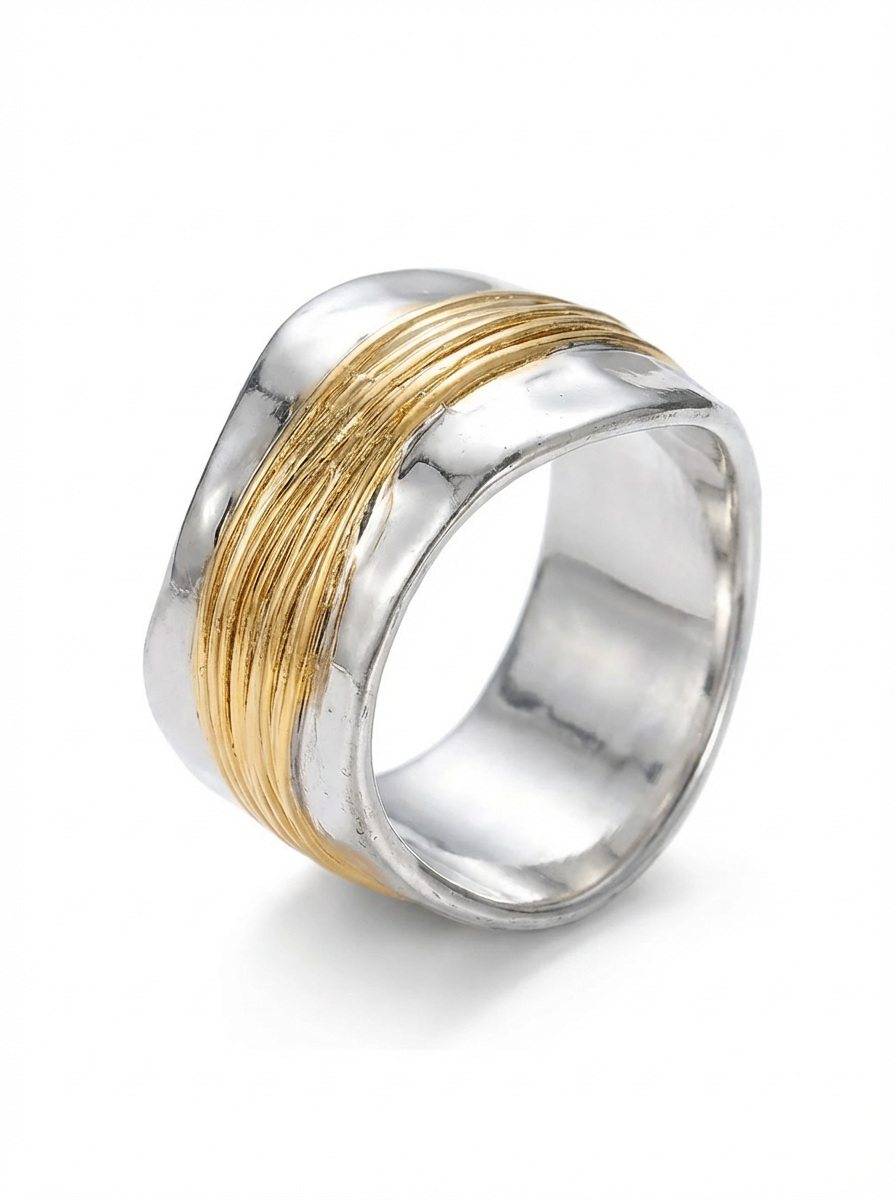 Elegant Gold-Colored Crossover Ring with Stones